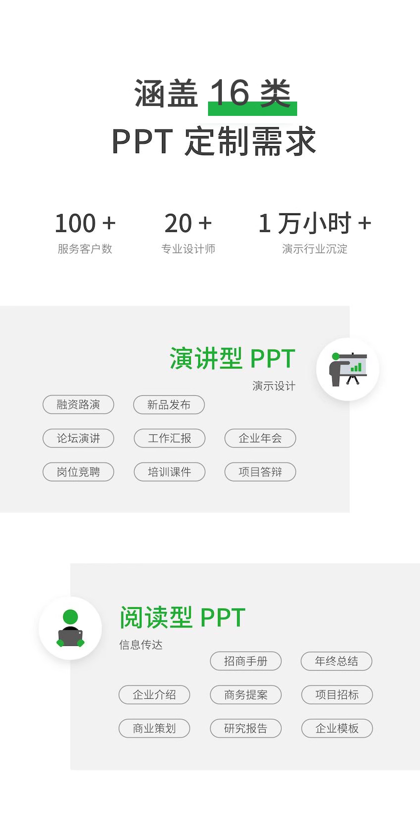 为任何行业任何场合的任何客户提供多方面的PPT设计服务